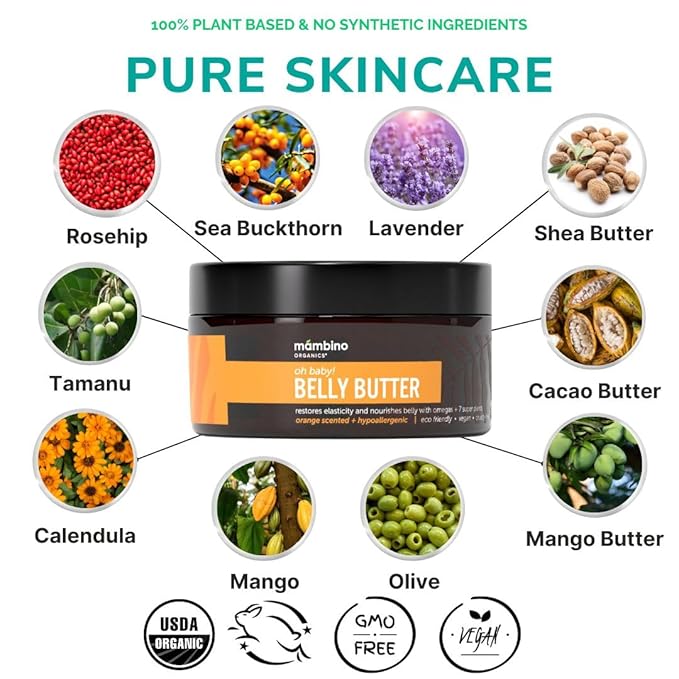 - SKIN REJUVENATION: This pregnancy belly cream, with organic Calendula Infused Oil and Rosehip Fruit Oil, works together to improve the look and feel of skinโs texture during pregnancy and rejuvenate your skin from within.