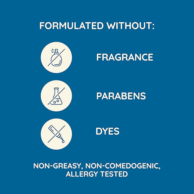 - Skin relief moisturizing lotion is specially formulated for dry, sensitive skin, has a non-greasy, non-comedogenic formula, has been allergy tested, and is free of fragrances, para-bens and dyes