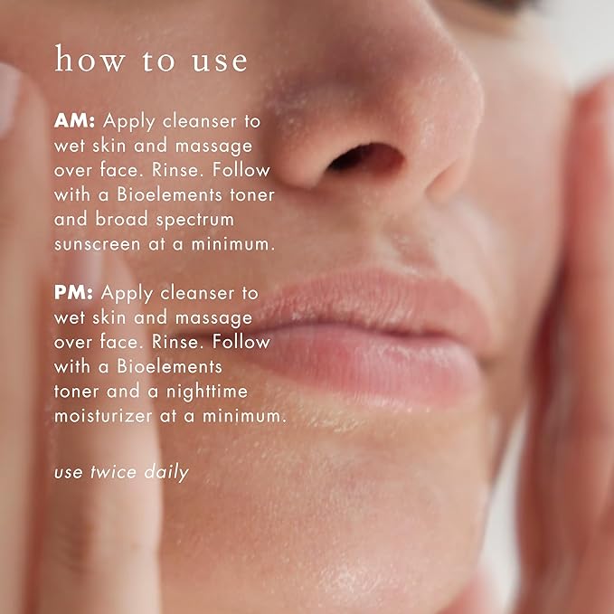 - HOW TO USE - In the AM, apply Bioelements Decongestant Cleanser to wet skin and massage over face. Rinse. Follow with a toner & broad-spectrum sunscreen. In the PM, apply to wet skin and massage over face. Rinse. Follow with a toner & moisturizer.