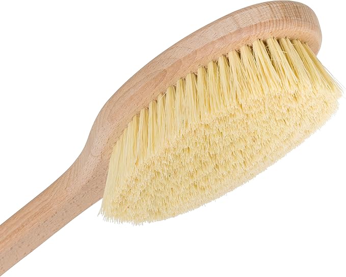 - Handcrafted Beechwood: The extra long handle back & body brush, crafted from natural oiled beechwood, ensures durability for daily use. The tampico fiber back brush measures 19-1/2" long