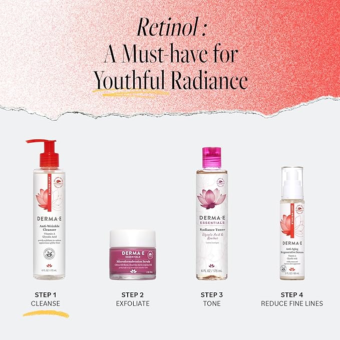 Derma E Anti-Wrinkle Cleanser – Anti-Aging Face Wash with Glycolic Acid and Vitamin A – Gentle Cleansing and Exfoliating Facial Wash Removes Makeup, Oil and Impurities, 6 oz