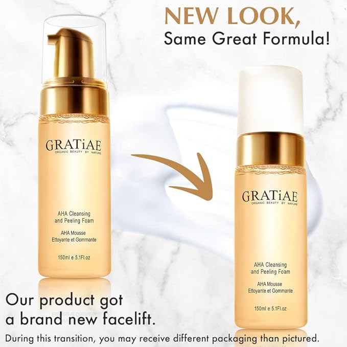 Gratiae organics, AHA Cleansing and Peeling Foam face wash, non-drying facial cleanser for sensitive, acne & allergy prone and all Skin Types, facial cleanser. 5.1 Fl. Oz