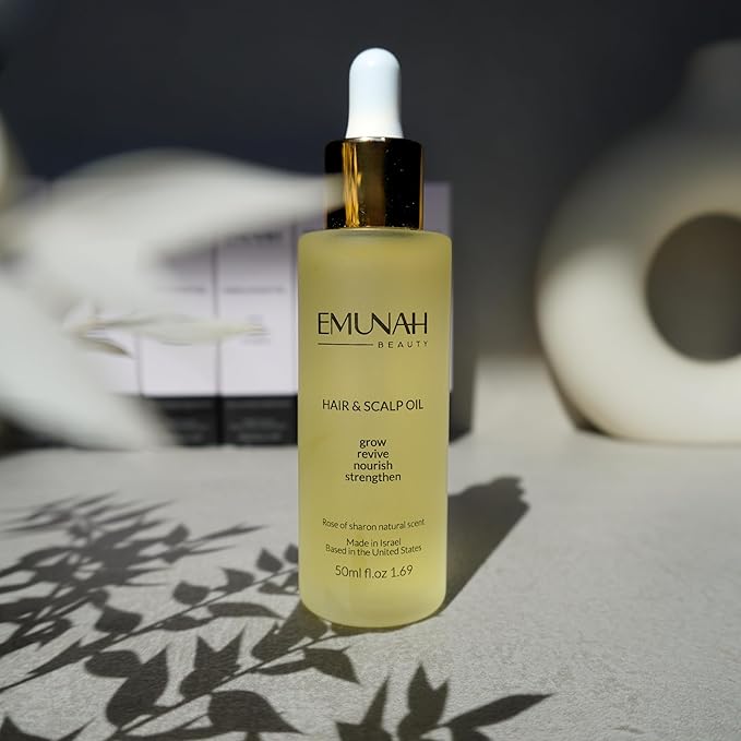 - SMOOTH SPLIT ENDS: Emunah Beauty Oil nourishes split ends and hair follicles for a sleek look; Apply to the ends of hair after hair wash for a healthy, shiny finish that can be air-dried or styled as desired