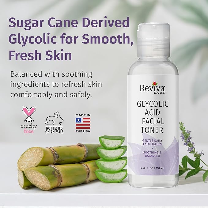Reviva Labs Glycolic Acid Toner – Gentle Face Exfoliator Non-Stinging & pH-Balanced Toning Solution with 4.2% Glycolic Acid – Hydrating Toner for Face, Leaves Skin Radiant & Refreshed – 4 fl oz