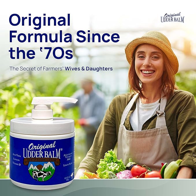 Original Udder Balm Pump Jar - Made in USA - Extra Thick Udder Cream & Hand Balm for Dry Skin, Cracked Heels, Rough Hands β Deep Moisture Heel Cream & Foot Moisturizer with Aloe Vera, 16 Fl Oz