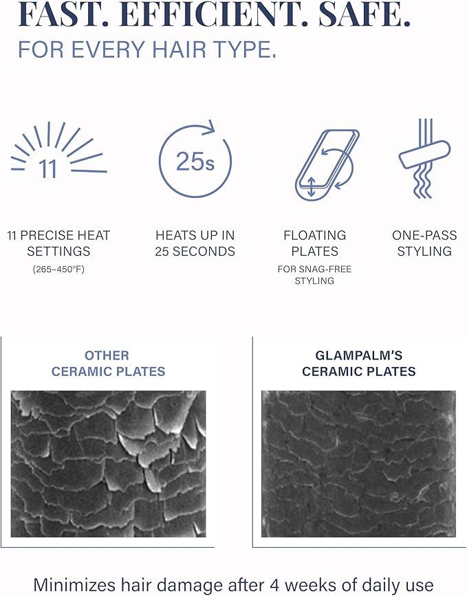 GLAMPALM Hair Straightener 1" Ceramic Flat Iron with Vibrating Plates, Korea's No.1 Professional Salon Tool with 3D Swivel Cord & Dual Voltage, 11 Heat Settings(140°–450°), 25s Fast Heat-Up (GP225)