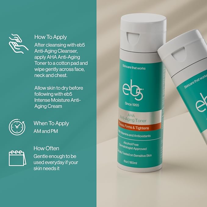 eb5 Aha Anti-Aging Facial Toner with Vitamins and Antioxidants, Tones, Firms & Tightens, Alchohol-Free, Clinically Tested on Sensitive Skin (6 fl oz)