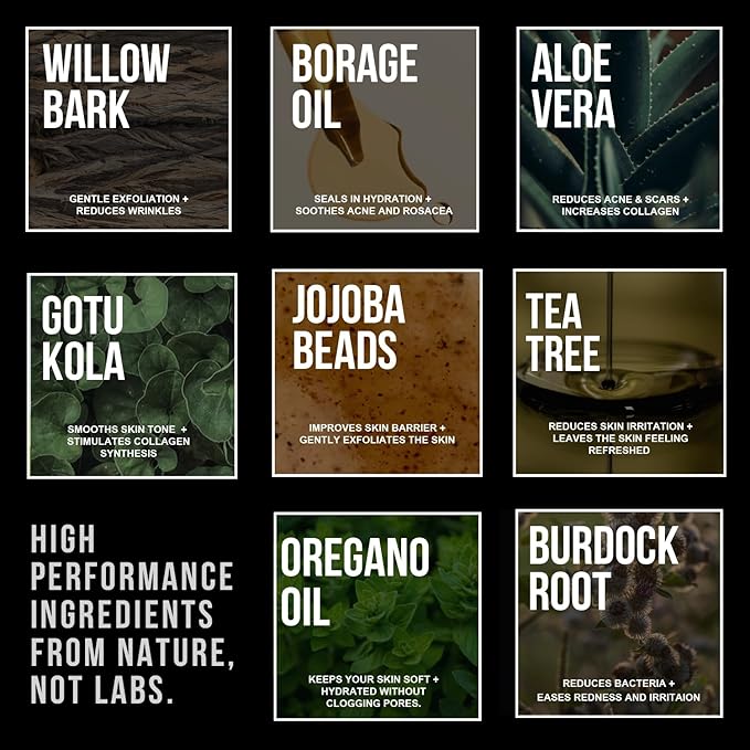 - š“ FOR DIVERSE SKIN TYPES: Normal, sensitive, oily, dry, combo and acne-prone complexions of all ages and ethnicities. This face scrub for men is crafted exclusively for him, targeting the challenges of rougher, thicker skin with more sebum (oil) production due to higher levels of testosterone.