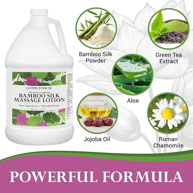 - LOTUS TOUCH ORGANIC NATURALS BAMBOO SILK MASSAGE LOTION - A powerful blend of renewable bamboo silk powder, green tea extract, and organic aloe vera juice
