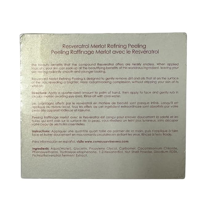 - RESVERATROL-ENRICHED - Enjoy the feel of this velvety-soft face peeling gel from Vine Vera. This opulent facial peel glides effortlessly across your skin, offering a gentle, indulgent exfoliation.