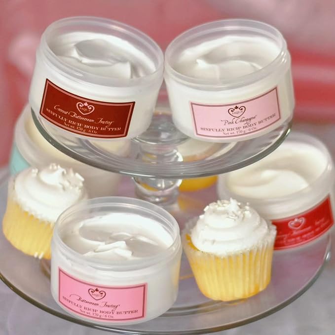 - Our sinfully rich body butters are our thickest formulation, made with delicious ingredients that help lock in moisture, protect against skin damage, and soothe and soften your skin. Layer with our hydrating body mists for extra nourishment and a longer-lasting scent!