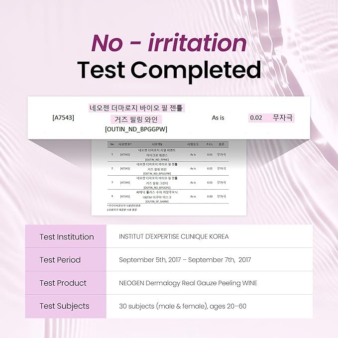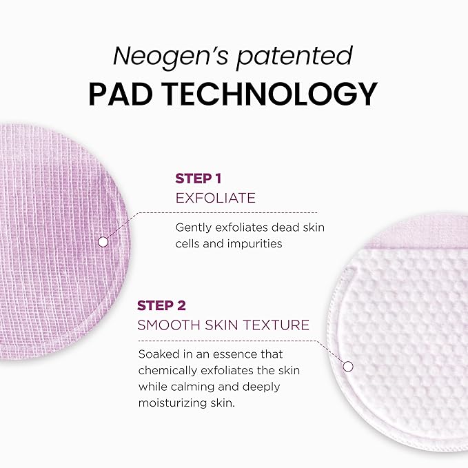 - 2-in-1 Chemical Peeling & Physical Peeling Pads: The Wine PHA peeling serum and the physical peeling effect of Neogen’s 3-layers gauze pad effectively remove dead skin cells and impurities for a soft, clear skin.