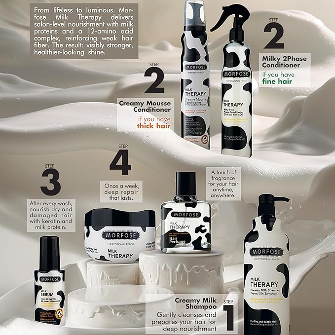 - Eliminate Dryness, Damage, and Split Ends – Make Morfose Milk Therapy Shampoo a part of your regular haircare routine and it can also help diminish dull dryness, flakiness, split ends, and general damage