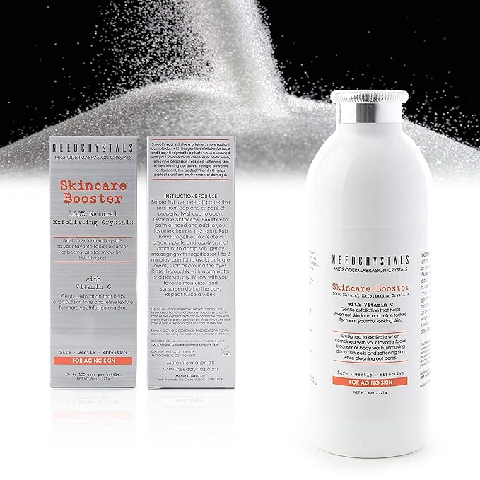 NeedCrystals Microdermabrasion Crystals, DIY Face Scrub with Vitamin C. Natural Facial Exfoliator for Dull or Dry Skin Improves Wrinkles, Anti-Aging, Skin Texture & Brightening. 8 oz