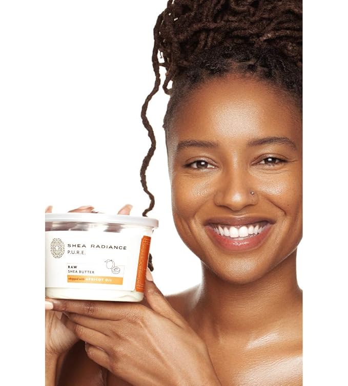 Shea Radiance P.U.R.E Raw Shea Butter | 100% Natural & Unrefined Body Butter | Soothes, Softens, & Increases Collagen | Long Lasting Moisture | Moisturizer for Sensitive Skin | Apricot Oil (9 oz)