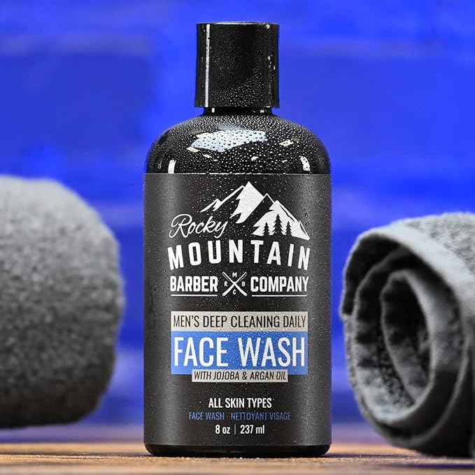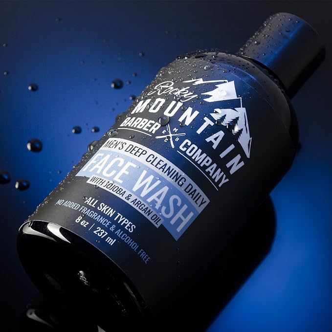 Rocky Mountain Barber Company Men's Daily Face Wash - With Jojoba Oil, Argan Oil, Chamomile Floral Water and Aloe Vera – Unscented - 8 oz