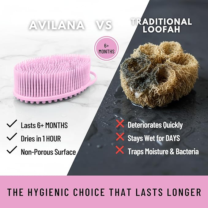 Silicone Body Scrubber for Shower - Gentle Exfoliating Back Scrubber with Soft Bristles - Avilana Premium Dual Sided Bath Brush Massage - Loofah Alternative for Sensitive Skin - Gift Women Men