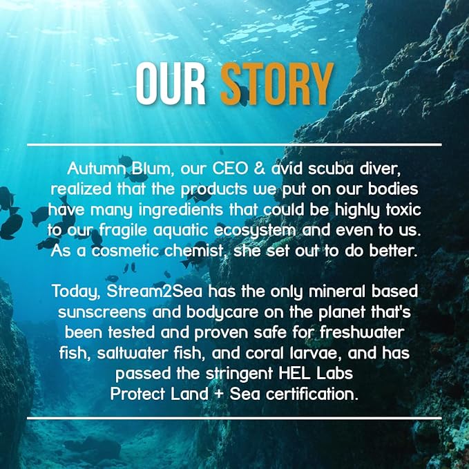 - OUR FORMULA IS REEF SAFE - Many chemical-based sunscreen are toxic to coral reefs and fish. Our product is a natural and eco-friendly mineral sunscreen. This has been tested and proven for humans, freshwater and saltwater marine life. Even our tubes are eco-conscious - all Stream 2 Sea containers are made from Sugarcane Resin. Happy seas and happy skin indeed!
