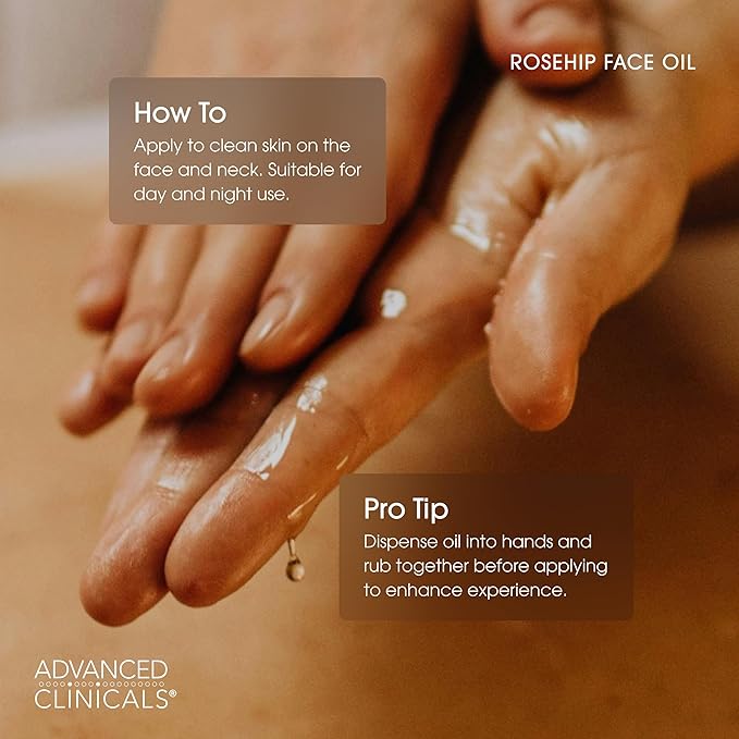 Advanced Clinicals Rosehip Oil For Face With Vitamin E + Botanicals Helps Improve Look Of Dark Spots, Wrinkles, Fine Lines, & Uneven Looking Skin Tone | Moisturizing Skin Care Face Serum, 2-Pack