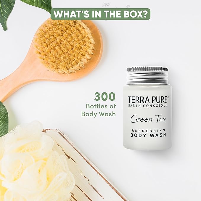 - MINIMAL WASTE, MAXIMUM EFFICIENCY: Terra Pure Green Tea Body Wash is designed with vacation rental owners and Airbnb hosts in mind. Unlike classic travel size bottles of bathroom body wash that contribute to waste, our compact body wash allow you to minimize your ecological footprint.