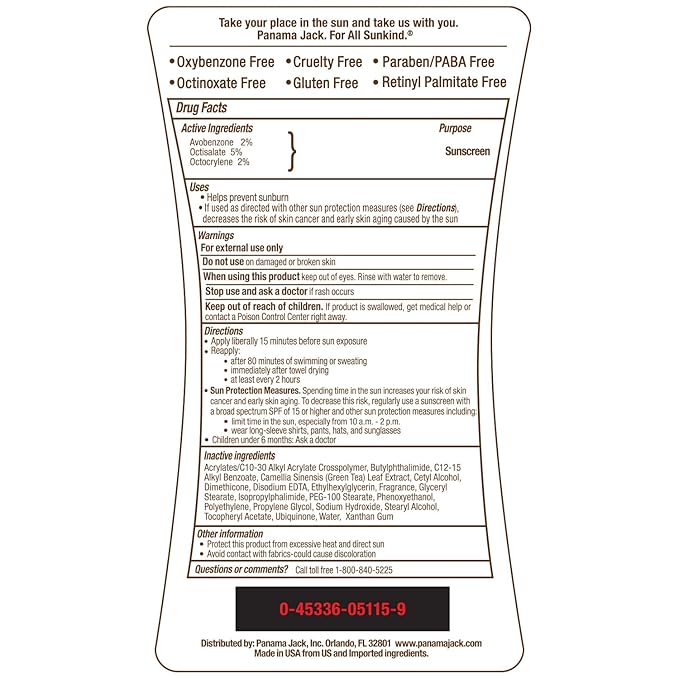 - MULTI-ACTION FORMULA: Panama Jack sunscreen lotion SPF 15 delicately combine antioxidants with moisturizing oils and a tropical fragrance in a one-of-a-kind oxybenzone and octinoxate free formula to help you reach your tanning potential