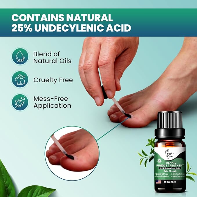 - OIL RICH FORMULATION - FOOT CURE’s toe nail fungus treatment extra strength is a natural blend of 25% undecylenic acid with oregano and tea tree oil for nail fungus. Perfect nail oil for growth and strength for nail cure.