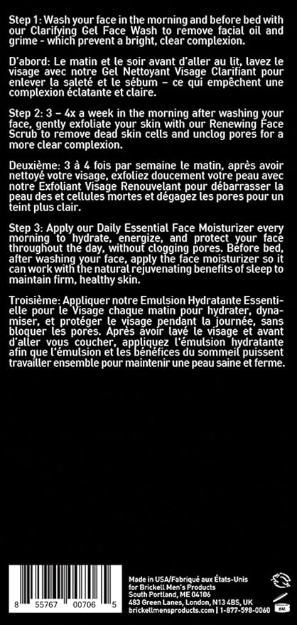 Brickell Men's Daily Advanced Face Care Routine I, Gel Facial Cleanser Wash, Face Scrub, Face Moisturizer Lotion, Natural and Organic, Unscented, Men's Skin Care Gift Set