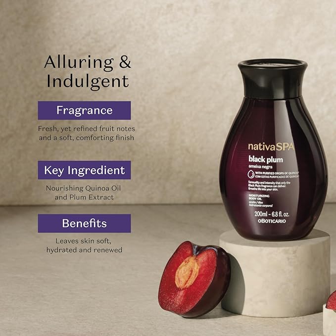 Nativa SPA by O Boticário, Black Plum Body Oil, Scented Moisturizer, Enriched with Purified Quinoa Drops to Boost Hydration, 6.8 Ounce
