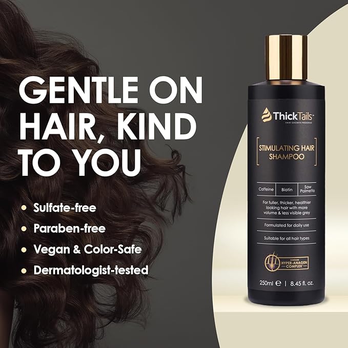 ThickTails Stimulating Hair Growth Shampoo for Women | Sulphate-Free Caffeine & Biotin Formula | Encourages Fuller-Looking Hair | Supports Scalp Health | Colour-Safe & Hydrating