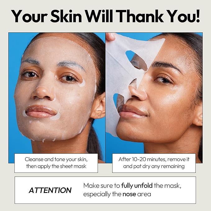 - HOW TO USE - After cleansing and toning, unfold a single sheet and gently spread over face avoiding the eye and mouth areas. Leave on for 10-20 minutes and remove mask, gently patting remaining serum until it is fully absorbed