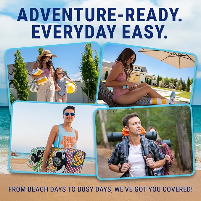 - DURABLE WATER RESISTANCE: Our sunscreen is water-resistant for up to 80 minutes. Apply it 15 minutes before sun exposure, and reapply every 2 hours or after towel drying. This sunscreen has been approved for usage by individuals aged 6 months and above, including both adults and children.