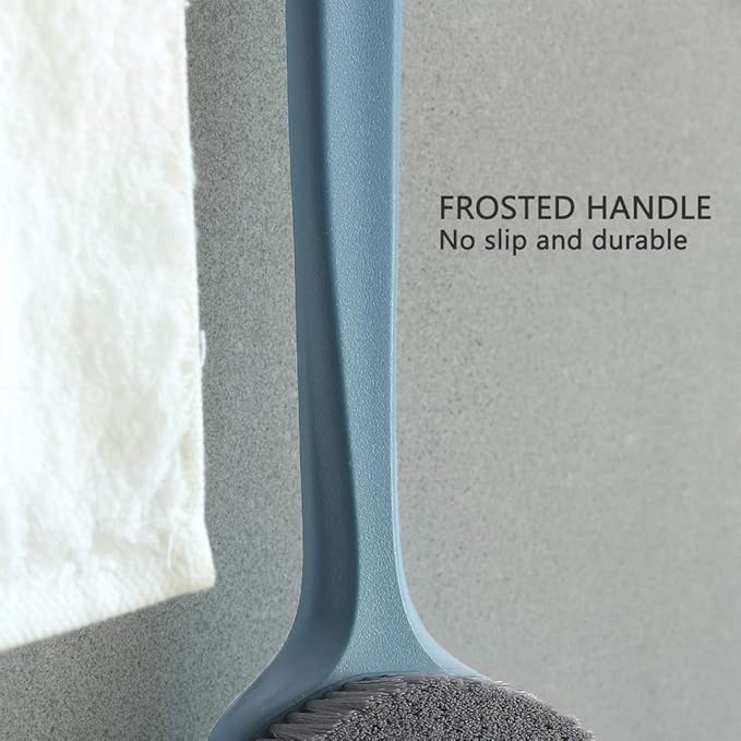 Upgraded Bath Body Brush with Comfy Bristles Long Handle Gentle Exfoliation Improve Skin's Health and Beauty Bath Shower Wet or Dry Brushing Body Brush (14 inch, Dark Blue)