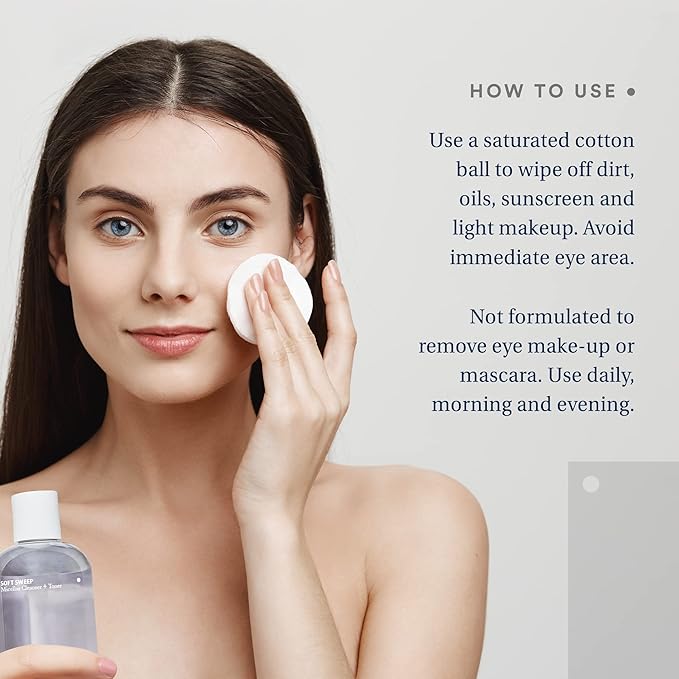 Care - Soft Sweep Micellar Cleanser and Facial Toner, Alcohol-Free and Paraben-Free Micellar Cleansing Water with Hyaluronic Acid, Glycerin, and Willow Bark Extract, Rinse-Free Face Cleanser, 8 fl oz