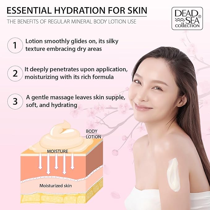 - Intensive Hydration - Dead Sea Collection cherry body lotion, a potent moisturizer for dry skin, offers deep hydration for lasting comfort.