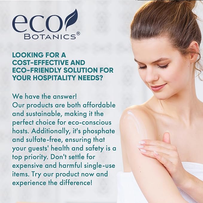 - LUXURIOUS HOTEL-QUALITY AMENITIES: Refill your wall-mounted or stand-alone pump bottle dispensers with our 4-gallons of Eco Botanics formulas, enriched with organic aloe, honey, and olive oil making it suitable for daily use and gentle enough for sensitive skin and hair. Perfect for hotels, vacation rentals like Airbnb and VRBO, guest rooms, and even home use.Diversified Hospitality Amenities, ideally designed and packaged to provide GREAT LOOKING hospitality service.