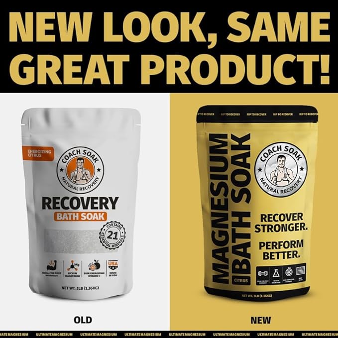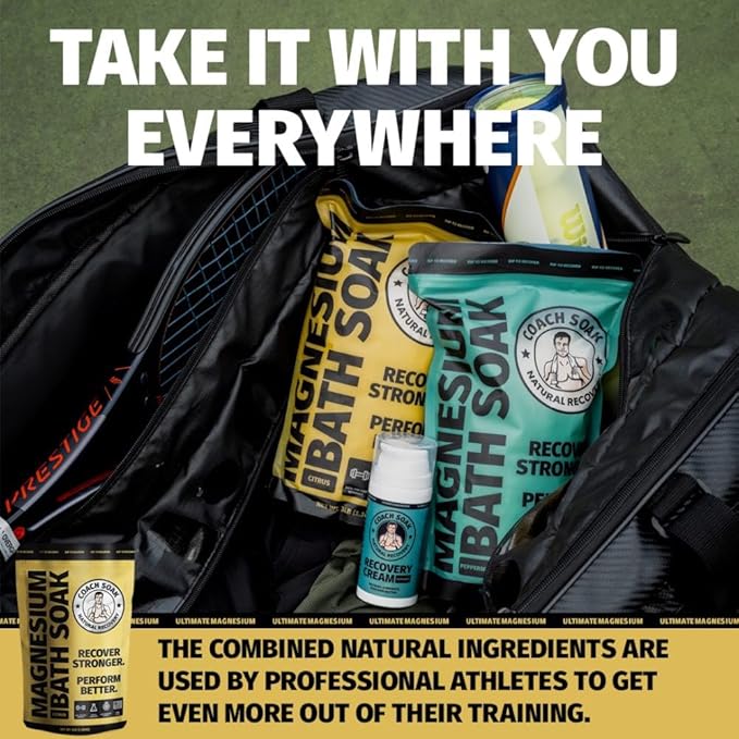 Coach Soak Recovery Bath Soak - Alternative to Epsom Salt Bath Soak - Fast-Absorbing Pure Magnesium Flakes & Dead Sea Salt with 21 Minerals, Bath Salts & Essential Oils - 3 lb, Energizing Citrus