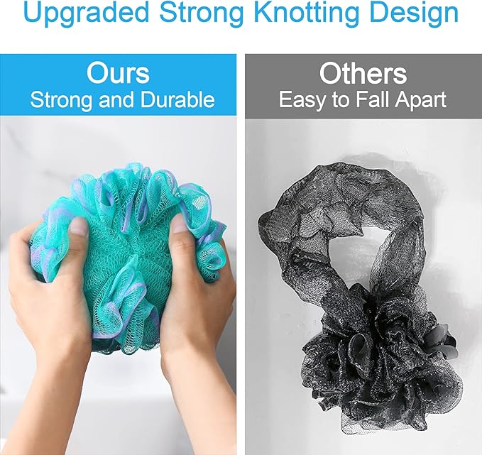 - Multiple colors: There are four elegant colors in the shower loofah pack, so you can choose the color you like to match your bathroom decor. It is also a great idea to give these shower sponge to friends and family as presents or stocking stuffers.