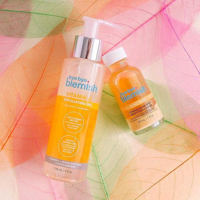 - Blemish Defense: Formulated with Papaya Enzymes, this Bye Bye Blemish Vitamin C Exfoliating Gel is a mild and gentle exfoliating gel that effortlessly removes dead skin cells and impurities. Lemon Enzymes restore balance to the skin’s surface whilst Vitamin C evens skin tone. Suitable for use on all skin types