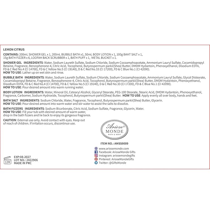 - YOU NEED A PAMPERING SELF-CARE KIT: This fresh lemon citrus scent emits a sparkling Lemon fragrance with notes of green lemon leaves, citrus, and warm white musk. Clean and Refreshing scent. This lemon spa kit will be just what you need to help you enjoy your bathing time