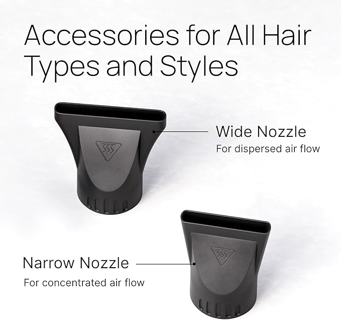 - 8.2ft Cord with Narrow and Wide Attachments: Our narrow attachment allows for a more concentrated airflow, perfect for accuracy and fast drying. The wide attachment provides a more dispersed airflow which creates a gentler distribution of air. Ideal for all hair types, our attachments help create volume while maintaining your natural hair texture. The 8.2ft cord offers added flexibility and convenience during use.