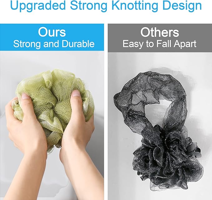 - Strong knotting design: The improved version of the loofah adopts special reinforcement and knotting technology, which greatly enhances the firmness and durability of the internal connection of the bath sponge.