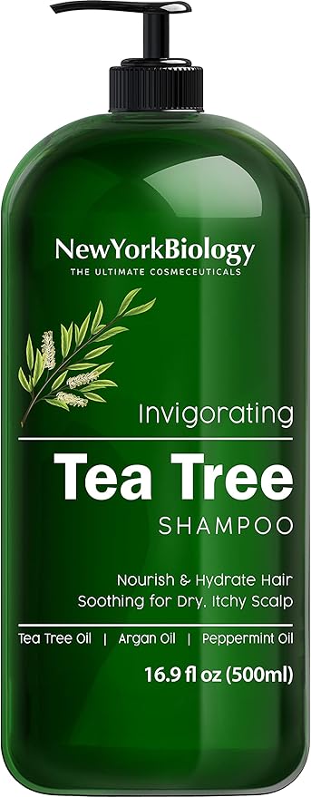New York Biology Tea Tree Shampoo – Deep Cleanser – Relief for Dandruff and Dry Itchy Scalp – Therapeutic Grade - Helps Promote Hair Growth – 16.9 fl Oz