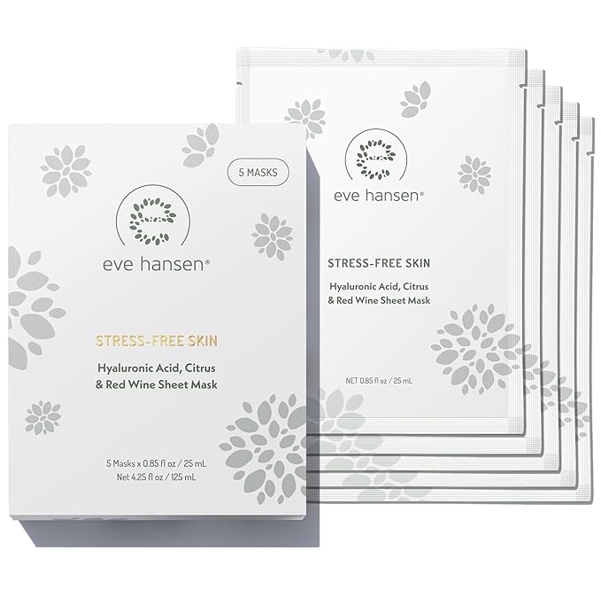 Eve Hansen Sheet Masks Set | Collagen and Hydrating Face Mask Sheet with Hyaluronic Acid, Red Wine Extract | 10x