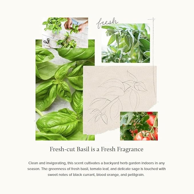 - Fresh-Cut Basil Fragrance - Clean and invigorating, this scent cultivates a backyard herb garden indoors in any season. The greenness of fresh basil, tomato leaf, and delicate sage is touched with sweet notes of black currant, blood orange, and petitgrain in this hydrating lotion.
