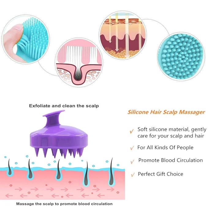 - Wet or Dry Brush: Silicone brush stimulates blood circulation; remove dead skin to improves skin quality; for Men & Women relieves stress. Scalp Brush for dandruff relief, exfoliating , shampoo scrubbing and hair growth, uneven combs designed for the scalp, [ergonomic design] bring comfort to your hand, perfect hair products.