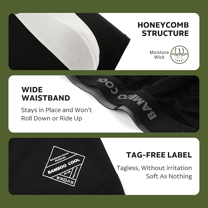 - FEATURES: The inside pouch adopts a honeycomb structure, made of raw bamboo viscose material, and the non-stained white bottom crotch is comfortable, and it is dry all day