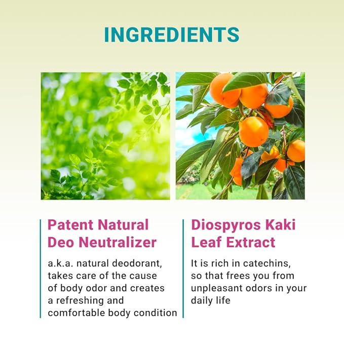 - BODY ODOR CARE: Natural Deo Neutralizer targets odor at the source for a fresh feel. Diospyros Kaki Leaf Extract, rich in catechin, helps eliminate unpleasant smells and keeps your body feeling clean.