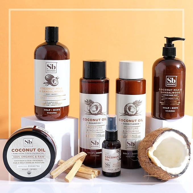 Soapbox Coconut Oil Shampoo, Harsh Sulfate Free, Paraben Free, Silicone Free, Color Safe, and Vegan Hair Shampoo (33.8 Ounces)