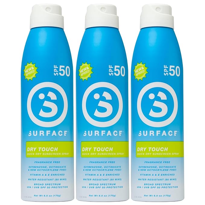 Surface Dry Touch Spray Sunscreen, Water Resistant, UVA/UVB Broad Spectrum, Fast Drying Protection, PABA Free - 6oz - SPF 50-3 PACK