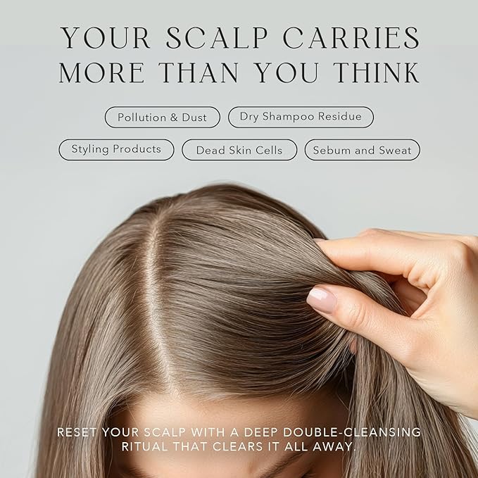 - TARGETS BUILDUP, OIL & ODOR: Ideal for hair scalp oil, dry shampoo residue, and odor caused by pore congestion; our scalp build up remover supports clarity with non-stripping marine actives inspired by double cleansing science to dissolve oils